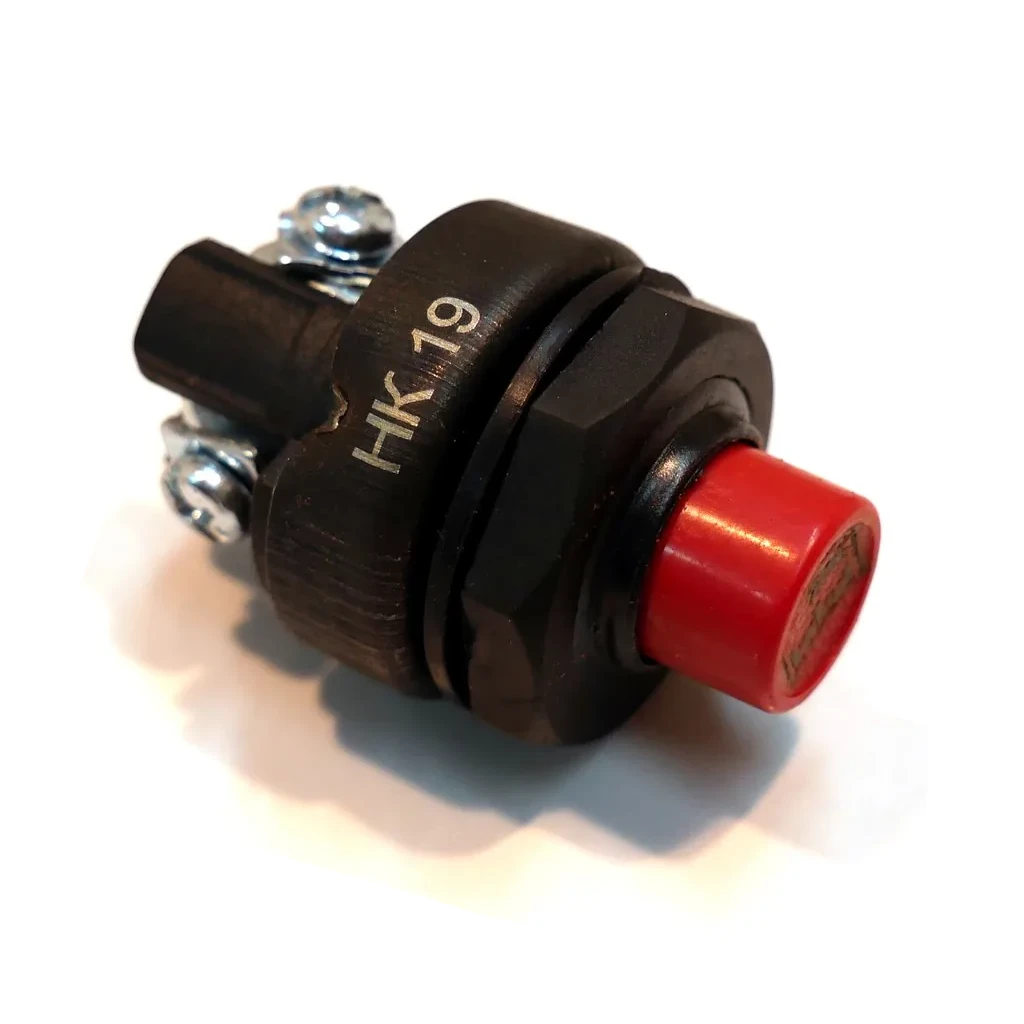Переключатель кнопочный не имеет фиксации, соединение (замыкание) электрических цепей происходит исключительно в момент нажатия кнопки на Переключателе и длится до прекращения нажатия.